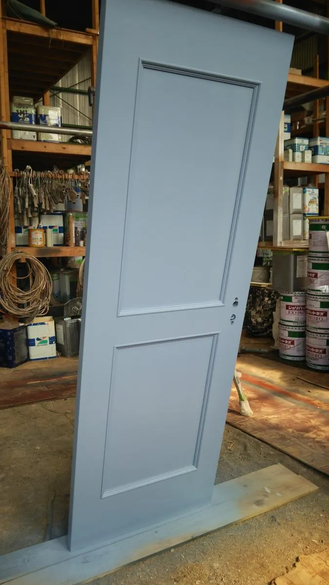 水色の室内扉の塗装