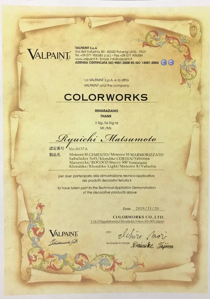 COLORWORKSさんにて、松本社長がVALPAINTのテクニカル講習を受講してきました。